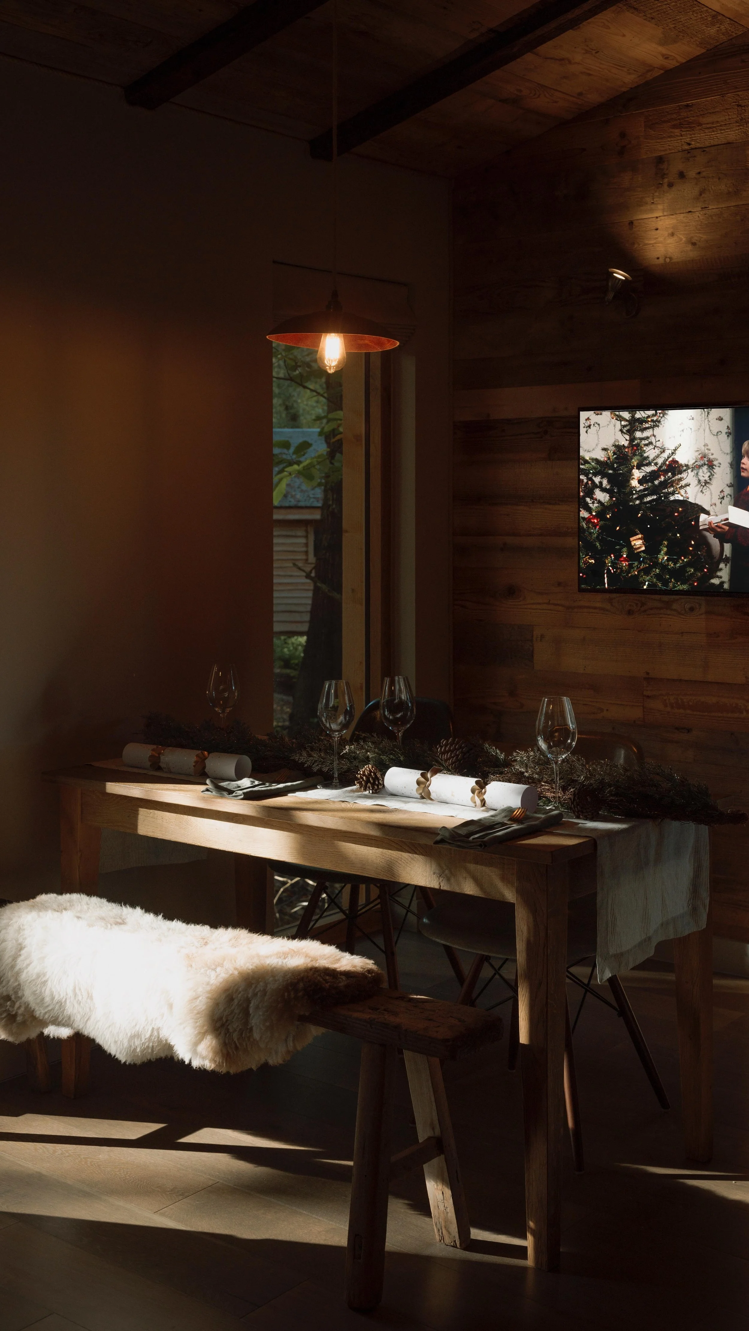 Muntjac offers an indoor and outdoor bath, open-plan living, and is the first treehouse off the main track.