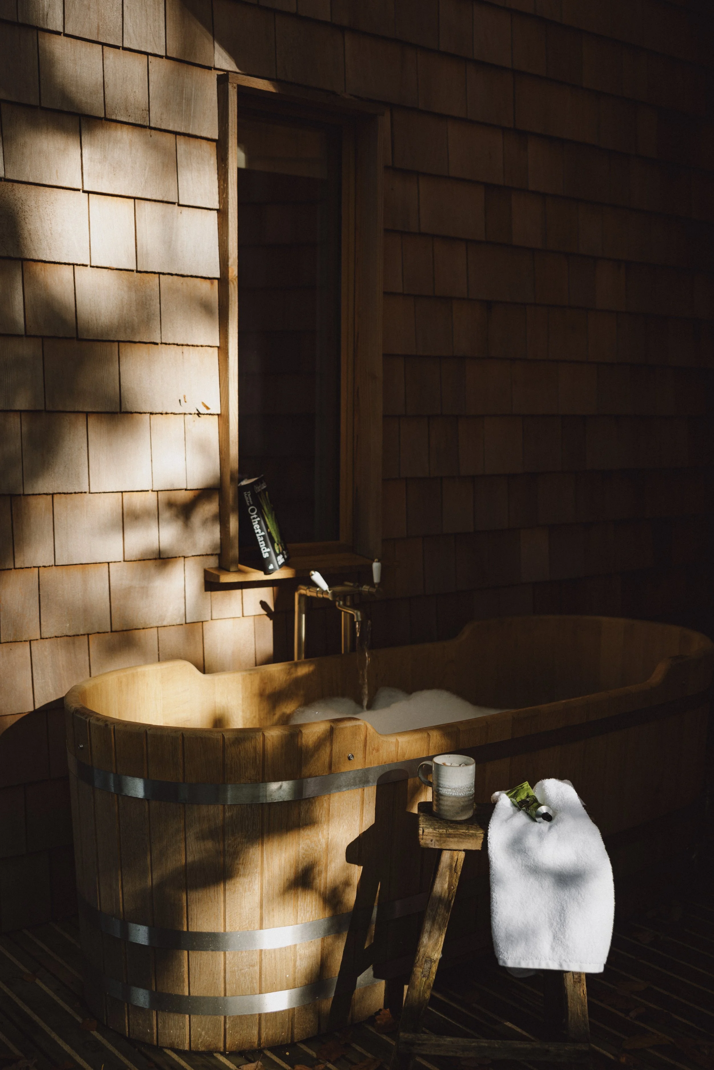 Muntjac offers an indoor and outdoor bath, open-plan living, and is the first off the main track.