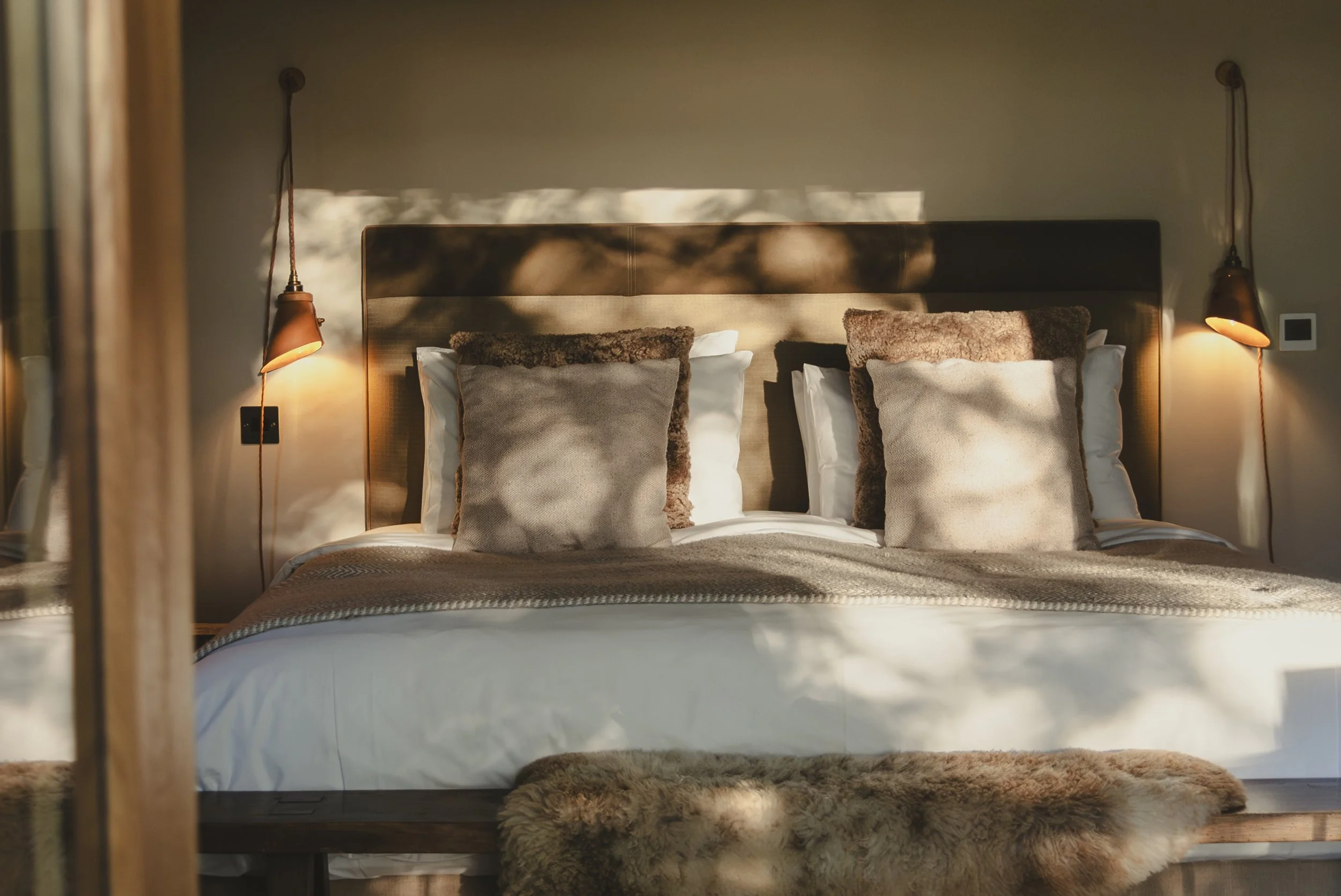 Master Suite | Super-king bed framed by floor-to-ceiling glass and woodland views.