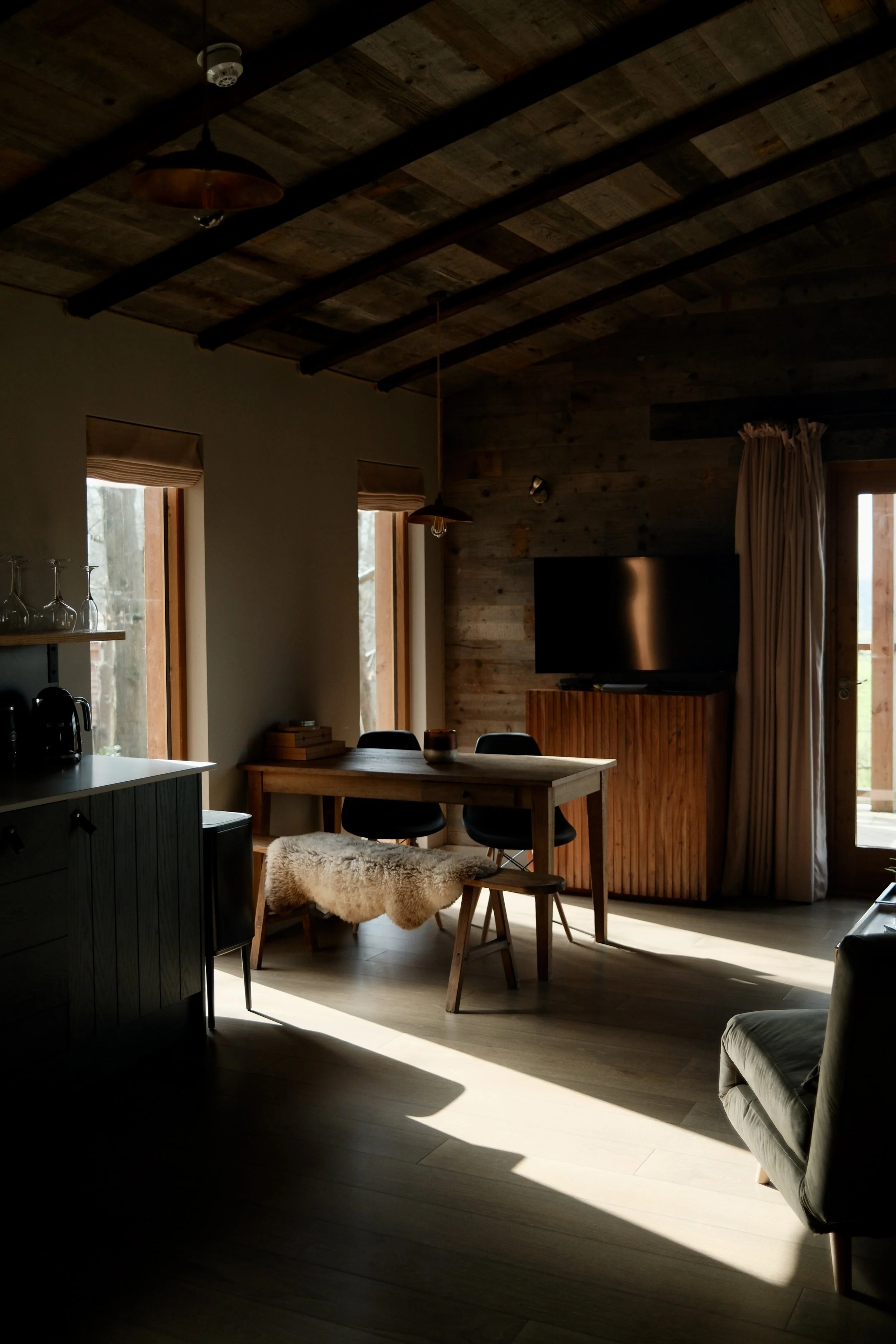 Interiors | Open-plan living with vintage furniture and underfloor heating.