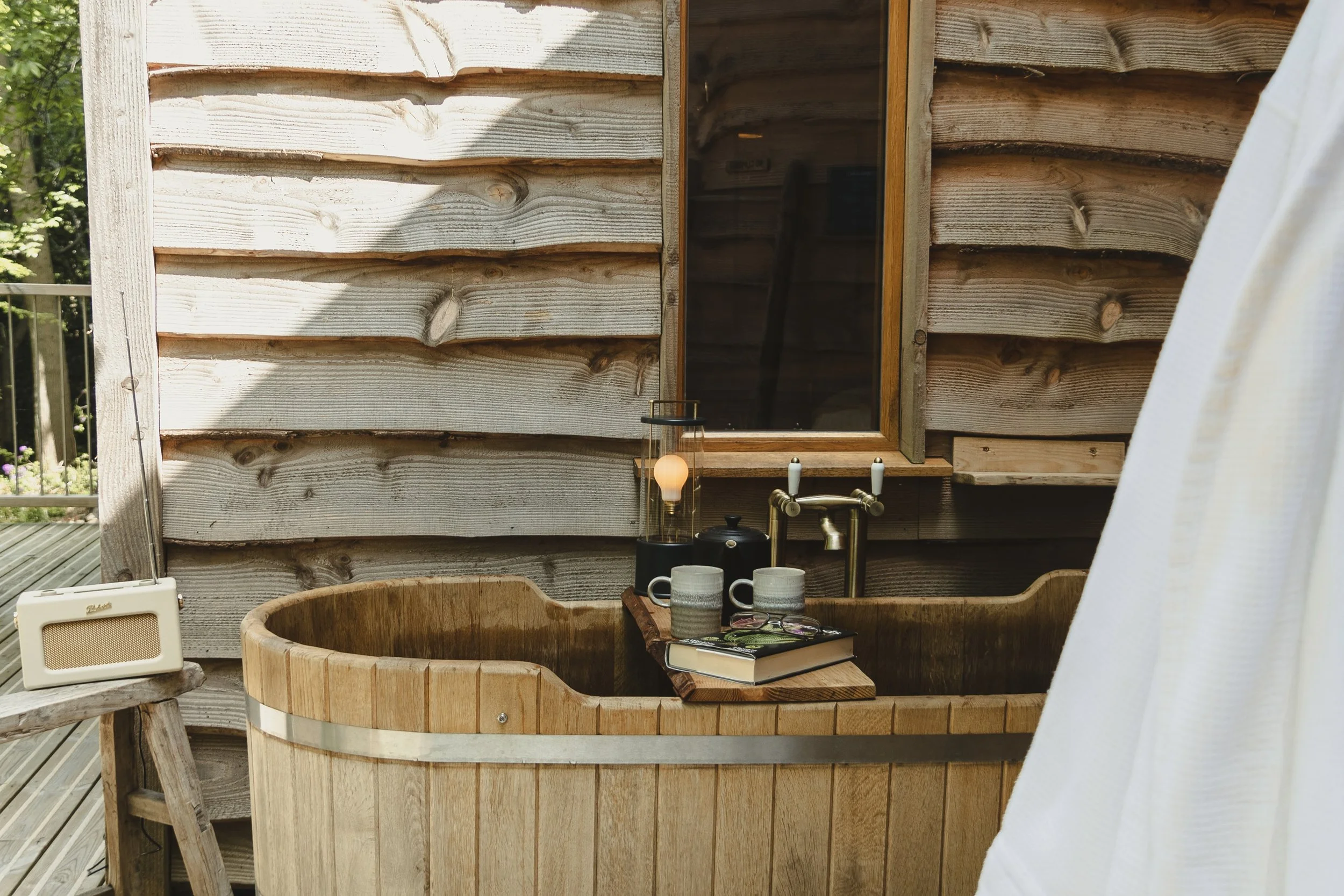 Open-Air Bath | Freestanding outdoor bathtub for forest soaking.